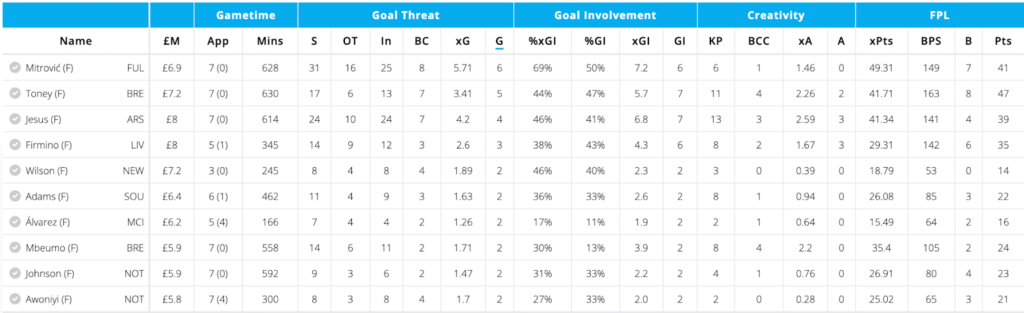 - The forward line is template with Haaland, Toney, and Mitrovic. Amongst non-premium forwards, Mitrovic and Toney are right up top and have scored more than even Jesus.