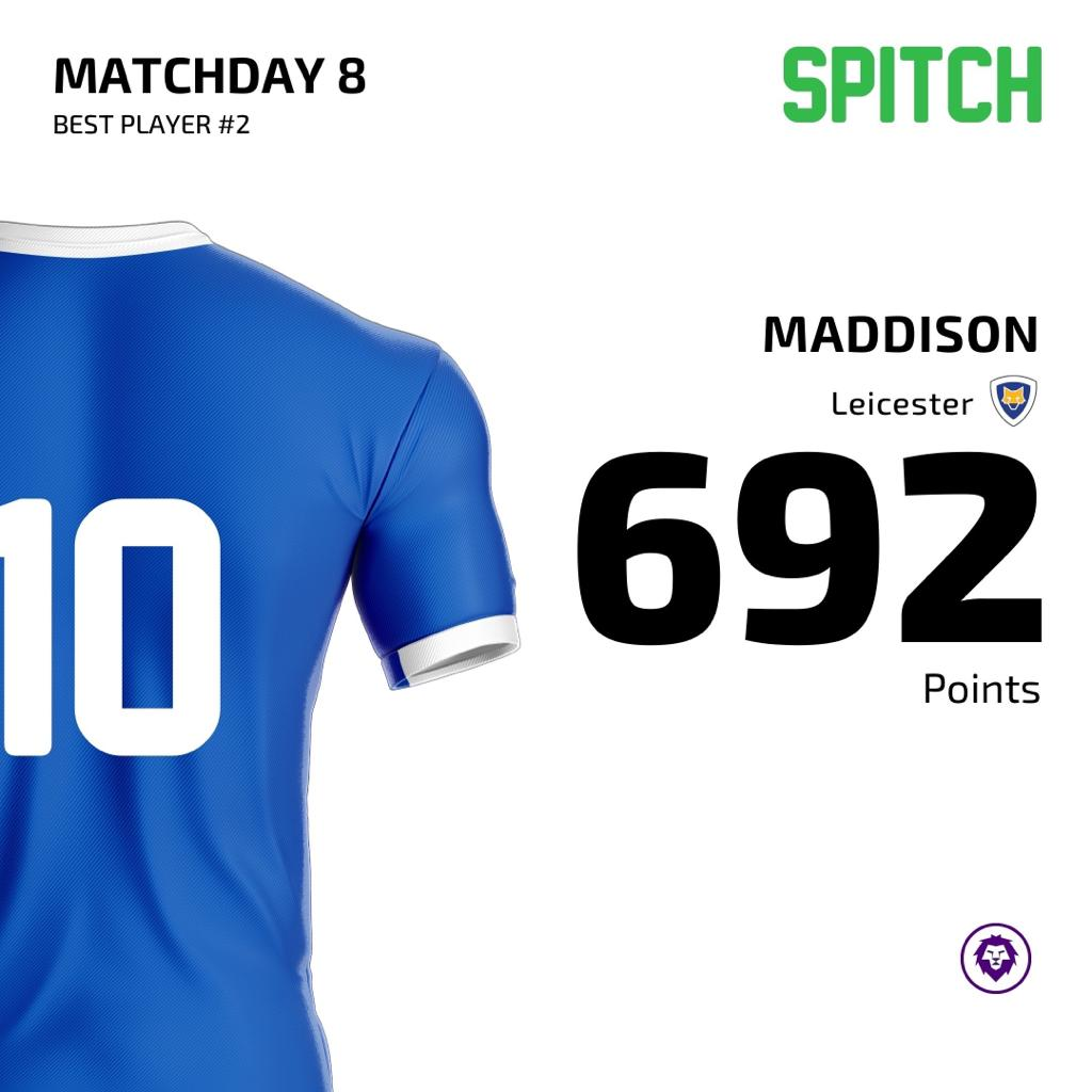 Another option who has been performing superbly well on SPITCH is Maddison. In matchday 8 he was the second highest scoring player scoring 692 points and averages 352 points per game costing just ₵98, his average is just 3 less than KDB who cost nearly double( ₵200)