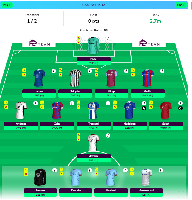- Double Newcastle defense with Pope and Trippier. Mings and Guehi both have good fixtures in GW12 fill in as budget defenders.