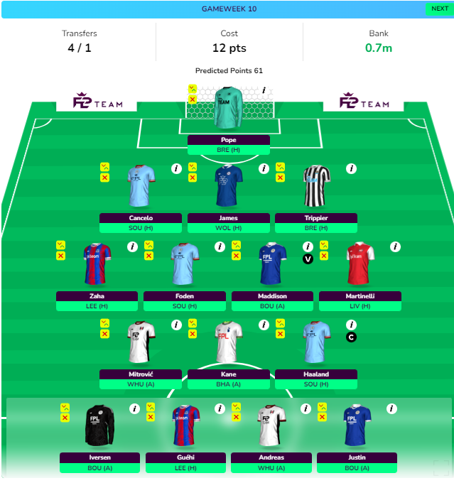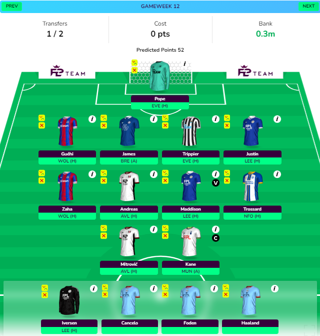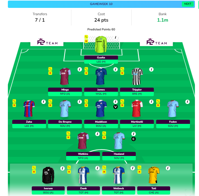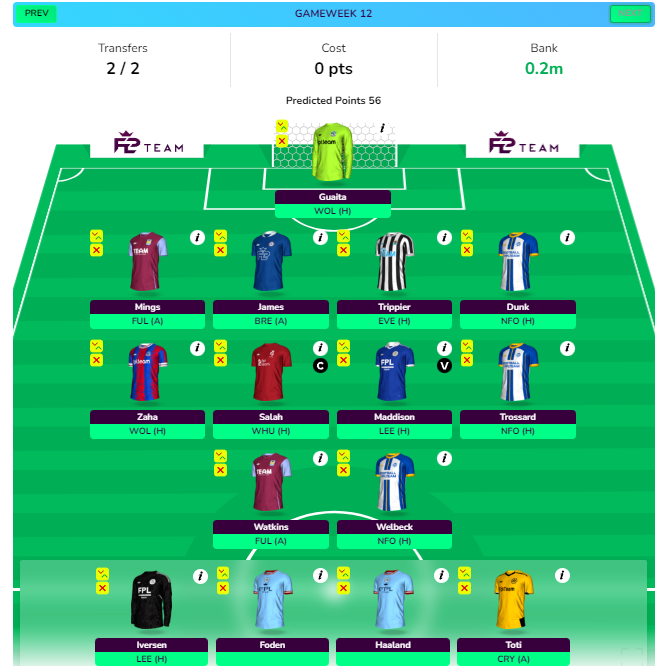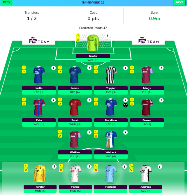 - Plan to get Salah and Trossard for GW12 as shown in right image.