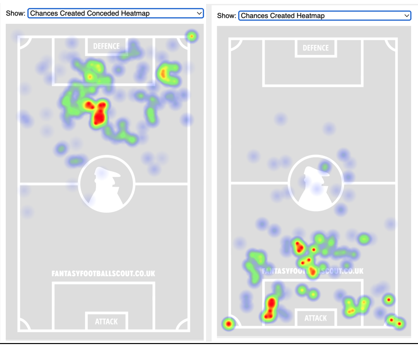 - Defensively, Everton struggle defending the left flank as they concede by far their most chances down that area of the pitch.