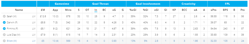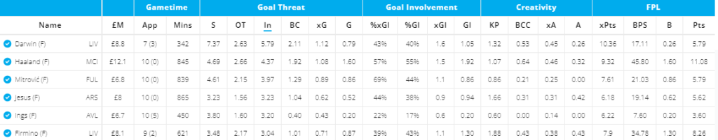 Liverpool’s opponents this week- Forest, have conceded the second most number of goals so far this season. They also have joint fifth worst record for % of chances conceded down the middle. We know that is exactly where Darwin operates. A match made in heaven!