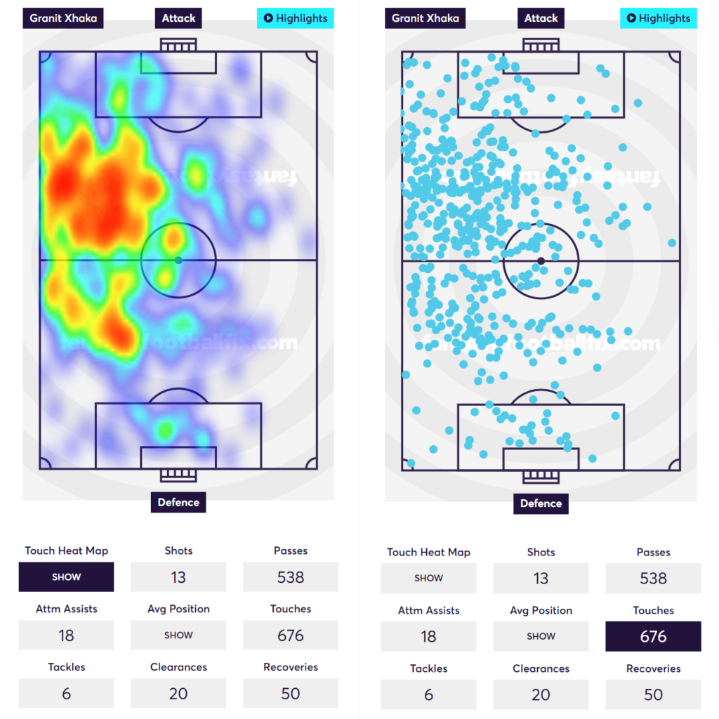 The touches in the box have confirmed in my mind, that this is going to be a consistent behaviour in Xhaka’s game. High positioning and creative freedom to dictate attacking plays.
