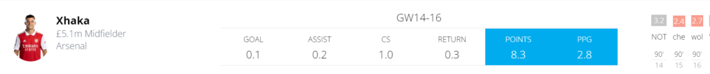 FFHub do not project Xhaka to score highly, but I feel this is based on his historical performances as a CDM. I can strongly advise that Granit is more of a box-to-box Midfielder who will constantly get into attacking areas.