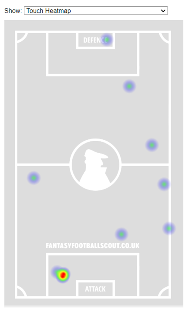 10 touches, 4 completed passes, an xGA of 0.0