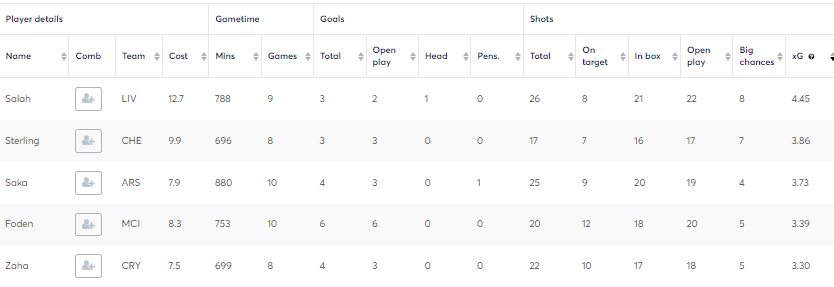- Despite having a poor start by his standards(3 goals, 4 assists, 53 points from 9 games) he has good underlying numbers- 8 big chances(1st among mids), xG- 4.45(1st among mids). With Salah back in form, he should be in your plans and one of the Top Transfer Targets for GW12.