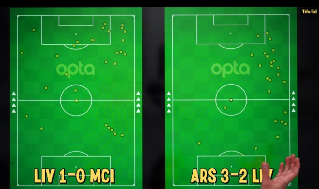 Salah Touch Maps- vs Manchester City(Left) and vs Arsenal(Right)