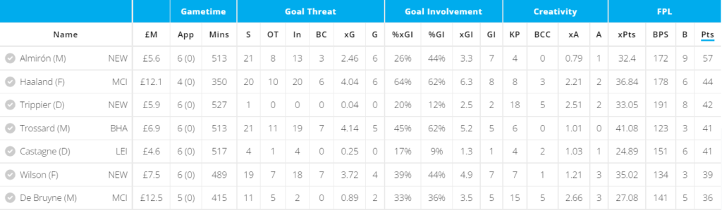 Trossard is the final pick and rounds up this Midfield heavy team. 73 points from 12 games averaging more than 6.0 FPL Points/game are crazy numbers for a 6.9 million midfielder. Wolves(A), Villa(H) in the final two games before the World Cup break are two good fixtures for Brighton and Trossard.