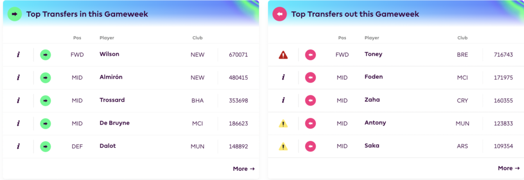 Before moving on, let’s glance at the previous week’s picks, where each one of our picks were successful. Dalot, Almiron and Saka all ended up outscoring the transfer outs. While Almiron scored a whopping 12 pointer.