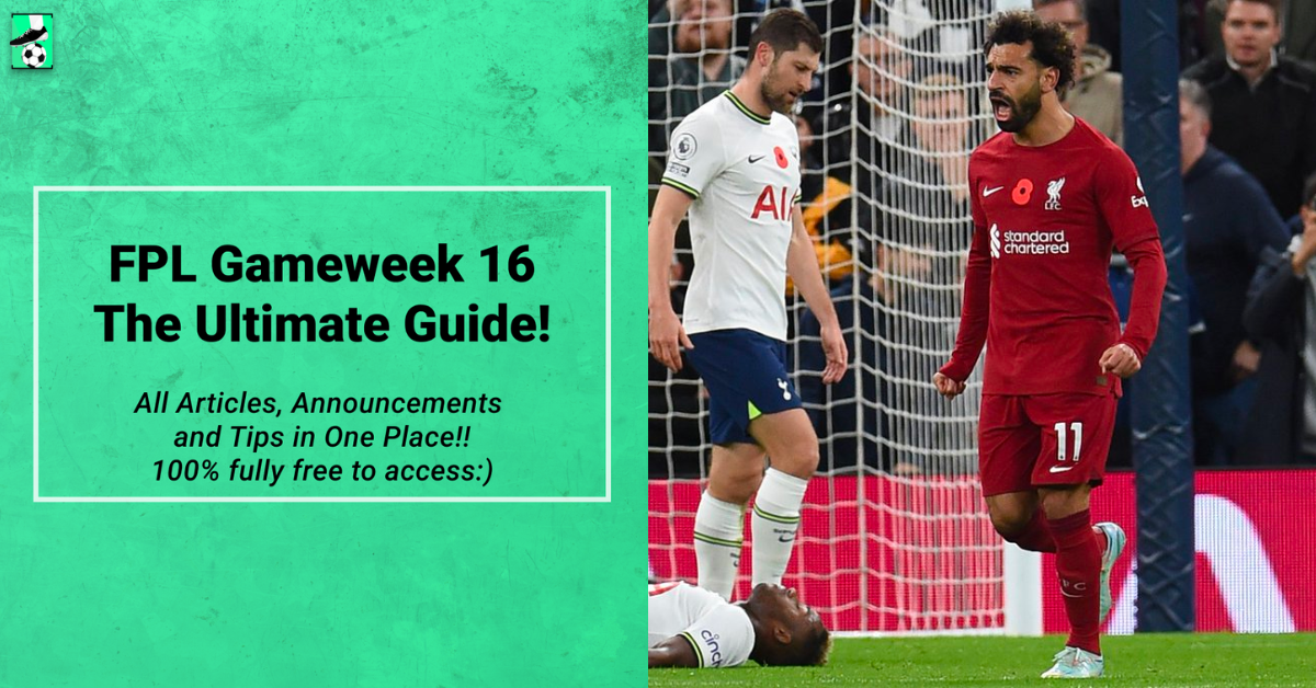 FPL GW16 is here and this is the last gameweek before the world cup break which makes it a crucial gameweek for FPL managers to finish as high as possible before the World cup break. In this blog, we cover everything right from FPL GW16 announcements, players to target, captaincy picks, tips, differentials, wildcard drafts, chip strategies, injury news, and more. Click on the links to read all the blogs of your choice. All of them are completely free to access!