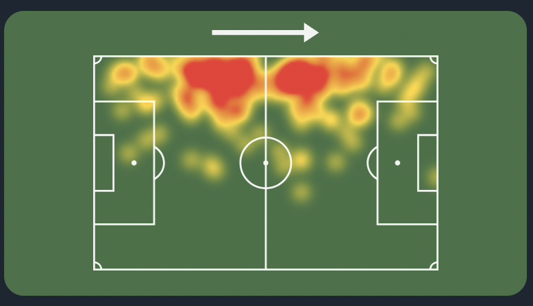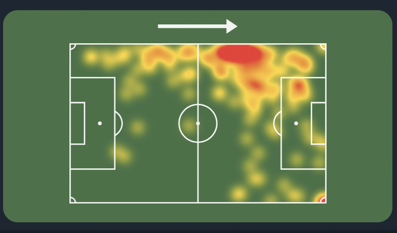 Olmo has been in good form for Spain. He’s had 2 big chances, 12 touches in the box, six attempts on goals(2nd best amongst mids) and 4 shots on target. Olmo heatmap down below.