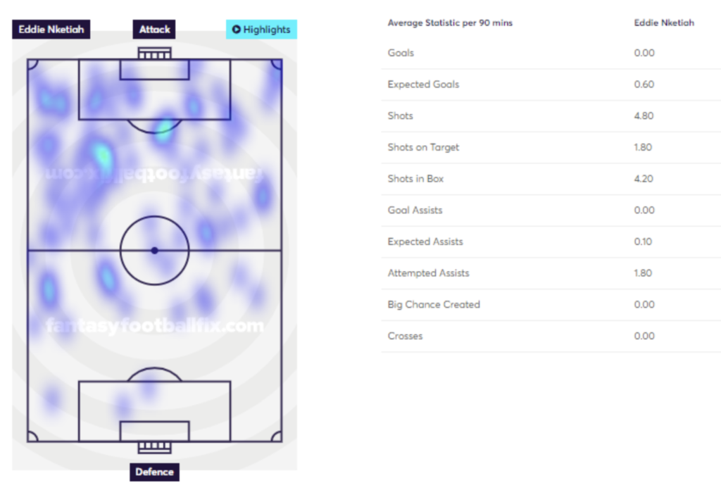 Eddie Nketiah (via FFFix): heatmap Eddie Nketiah (via FFFix): stats p/90
