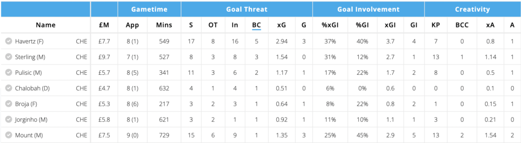 Meanwhile, Nottingham Forest are fourth worst in the league for % of chances conceded down the center of the goal. Havertz, therefore, has the numbers as well as the opposition in his favor to keep his excellent form going, as we edge closer to Chelsea’s double Gameweek.