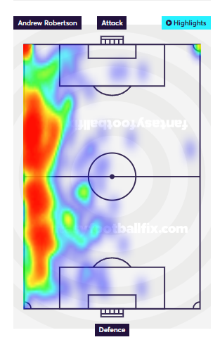 Even though Liverpool defense is not looking great, Robertson is a good shout from an attacking perspective. Since GW14, Robertson is Top for Chances Created- 14(1st), Big chances created- 4(1st), Successful crosses- 15(1st) among defenders. Leicester have conceded 30 chances from their right flank over the last 6 matches which is the second highest in the league. Robertson would be the one on Leicester’s right flank and has been taking up good attacking spaces off late as seen below.