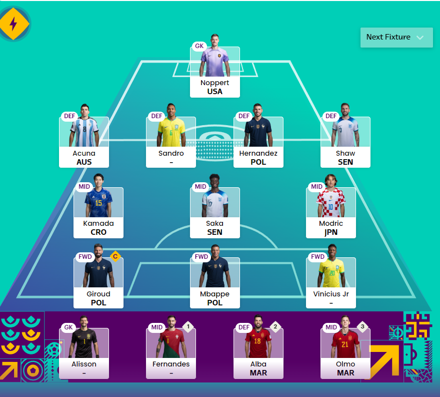 - Messi and Mbappe pick themselves and are top captaincy choices for Matchday 4. Mbappe has the most Big Chances(6), Most Goal Attempts(16), Most Penalty Area touches(35) in this World Cup. Mbappe should fancy getting atleast a goal vs Poland who have conceded the most big chances(10) among teams left in the competition.