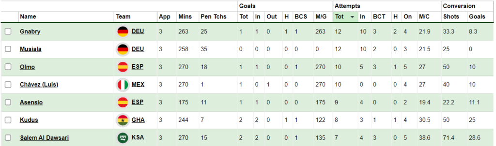 - Olmo has the most Goal Attempts(10), most Big chances(3) among Midfielders in Round of 16.
