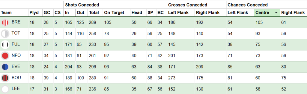 21 Premier League goals from 18 games is just insane. He is a no-brainer. Double Gameweek is just a added bonus. As expected, Haaland’s underlying stats are also really good. Haaland has been rested in both the cup games(didnt start) and will also be fresh. The last time he faced Manchester United, he got 3 goals, 2 assists fetching 23 points in FPL GW9. His other GW20 opponent Spurs are 2nd worst for conceding chances through the center in the league(see below image)