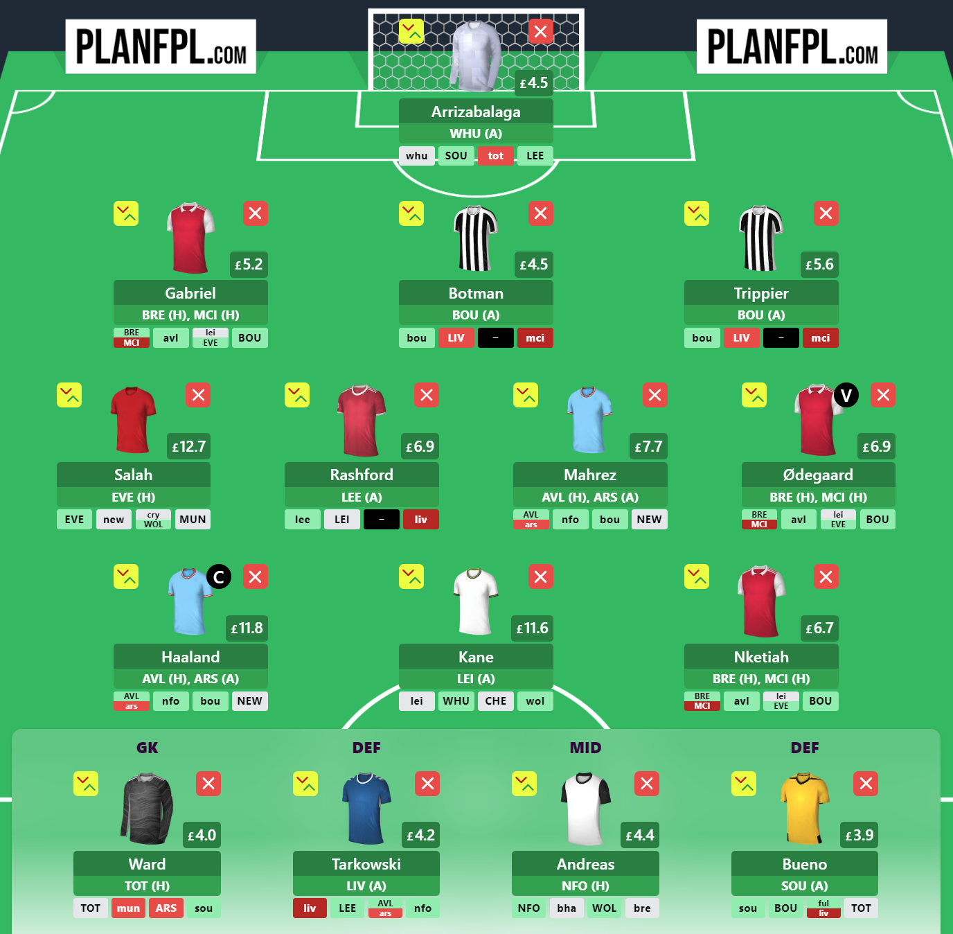 Going with the budget trio allows a more straightforward spread to transfer in ‘big-hitters’ such as Salah, Kane & Haaland. Whilst being able to purchase Mahrez and keep a strong balance in the squad.