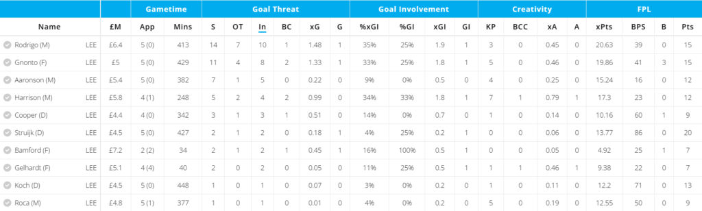 Post the World Cup, no Leeds player has had more big chances than Gnonto. Furthermore, as we can see from the above graphic, only Rodrigo has had more shots in the box(He’s now out injured for two months). However, their xPts are more or less similar, with Gnonto being far more cheaper and also in a better position, as he is a forward.