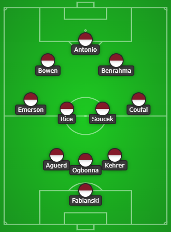 West Ham GW25 Predicted Formation: