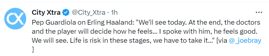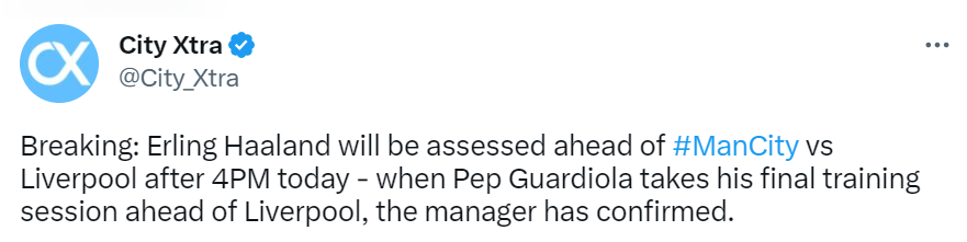 Erling Haaland is nursing a groin injury ahead of Man City’s game vs Liverpool game and it is clearly not known if he’ll play the game or not. It’s been confirmed that Haaland will be assessed after Man City’s training on Friday. Although Pep also mentioned that he spoke with him and added that he feels good.