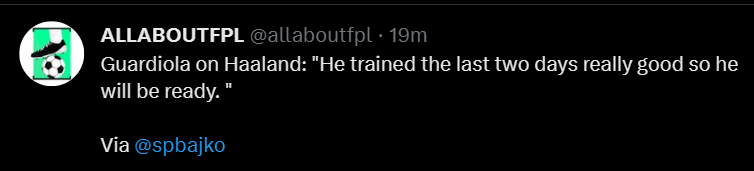 It is to be noted that Haaland has come off the bench in the league only once this season(GW15 vs Fulham) while coming back from the foot injury which saw his miss GW14. Other than that, he has started every league game when he is fit despite the tight schedule for City across competitions.