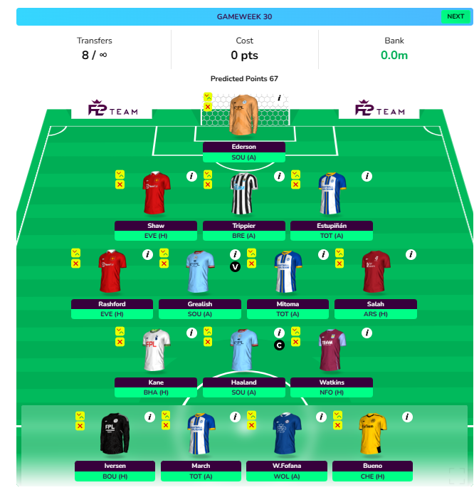 - Double up on Brighton Midfield with Brighton likely to have 3 Double Gameweeks in 4 weeks from GW34-GW37.