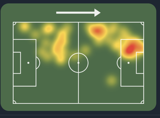 Mitoma was very unlucky not to score against Man United with the Brighton attacker registering an xG of 0.67 which included a big chance missed. He was very lively as always which can be seen from his heatmap against Man United.