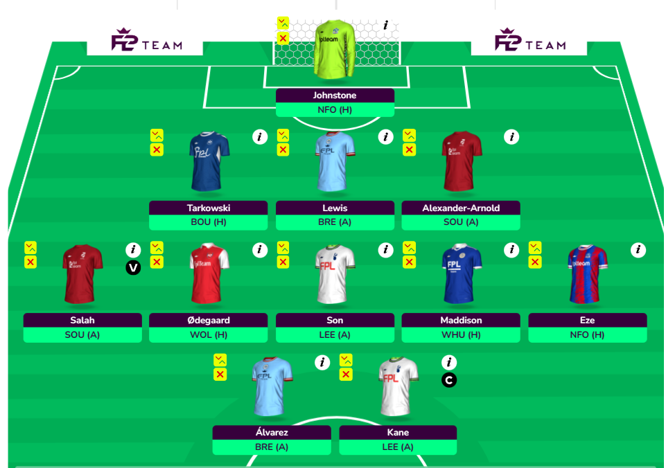 | Scout picks | GW1 | GW2 | GW3 | GW4 | GW5 | GW6 | GW8 | GW9 | GW10 | GW11 | GW12 | GW13 | GW14 | GW15 | GW16 | GW17 | GW18 | GW19 | GW20 | GW21 | GW22 | GW23 | GW24 | GW25 | GW26 | GW27 | GW28 | GW29 | GW30 | GW31 | GW32 | GW33 | GW34 | GW35 | GW36 | GW37 | GW38 | H2H |