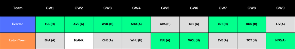 If you rotate Everton and Luton Town defenders correctly till GW9, you will have-