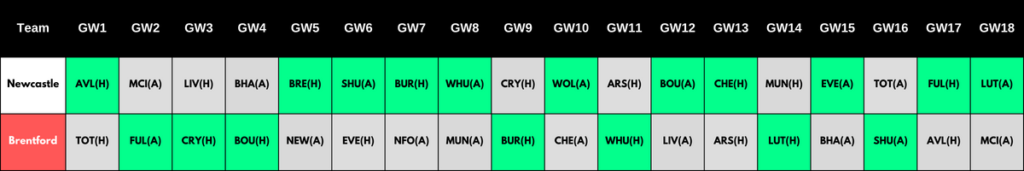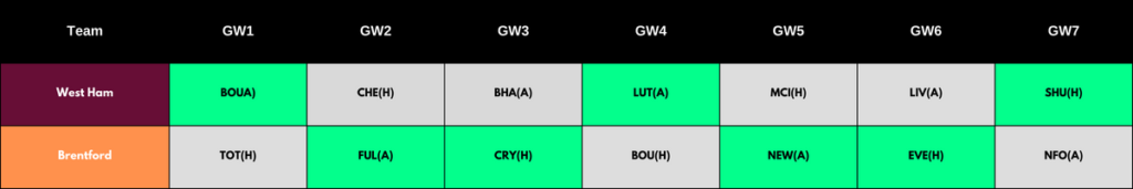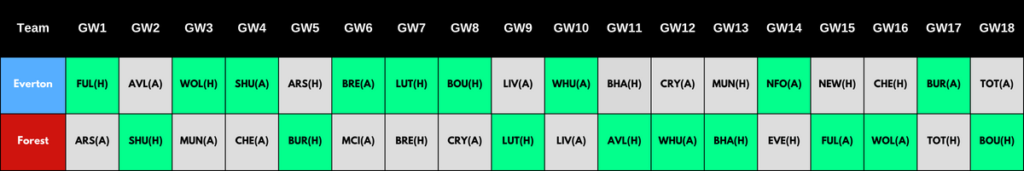 Forest and Brighton defenders also rotate well up to GW16 entirely avoiding Last season’s Top 6 teams.