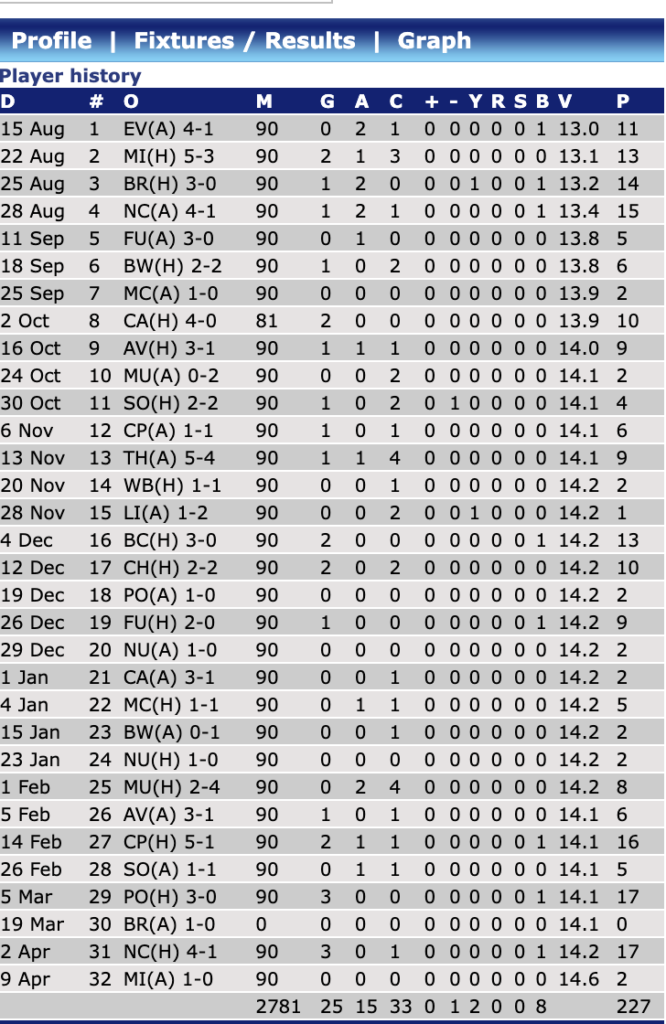 However, RVP was not able to live up to his price tag and reputation for the third consecutive season as he ended up the season with just 112 points.