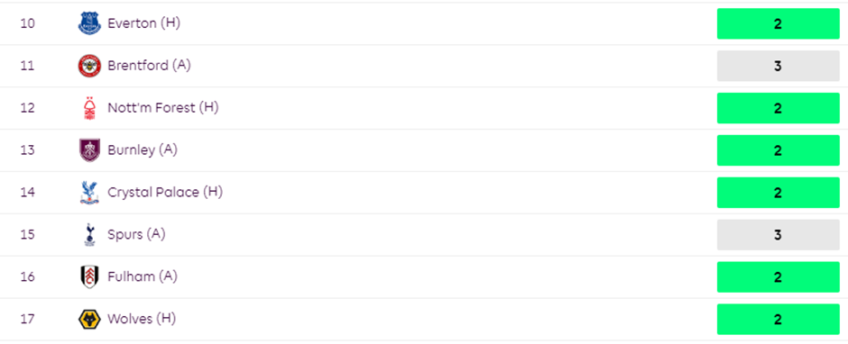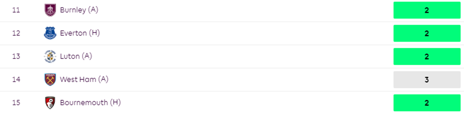 Couple this with the fact that each of the first 3 matches of Brighton has an FDR of 2.
