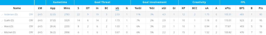 ยฃ4.5m Crystal Palace defenders have been favoured among FPL managers the last two seasons, and Andersen beats his team-mates for most data.