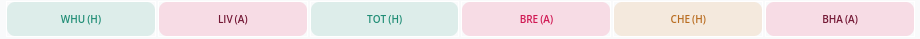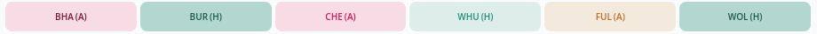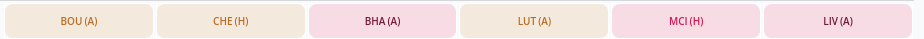 Aston Villa were a solid defence last season, getting 12 clean sheets and only conceding 46 goals (joint-5th among all teams). They have tough games against Newcastle, Liverpool, and Chelsea in the first six, but also face Everton, Burnley, and Crystal Palace. Similar to Botman, this would likely mean that the Villa defence would be rotated.