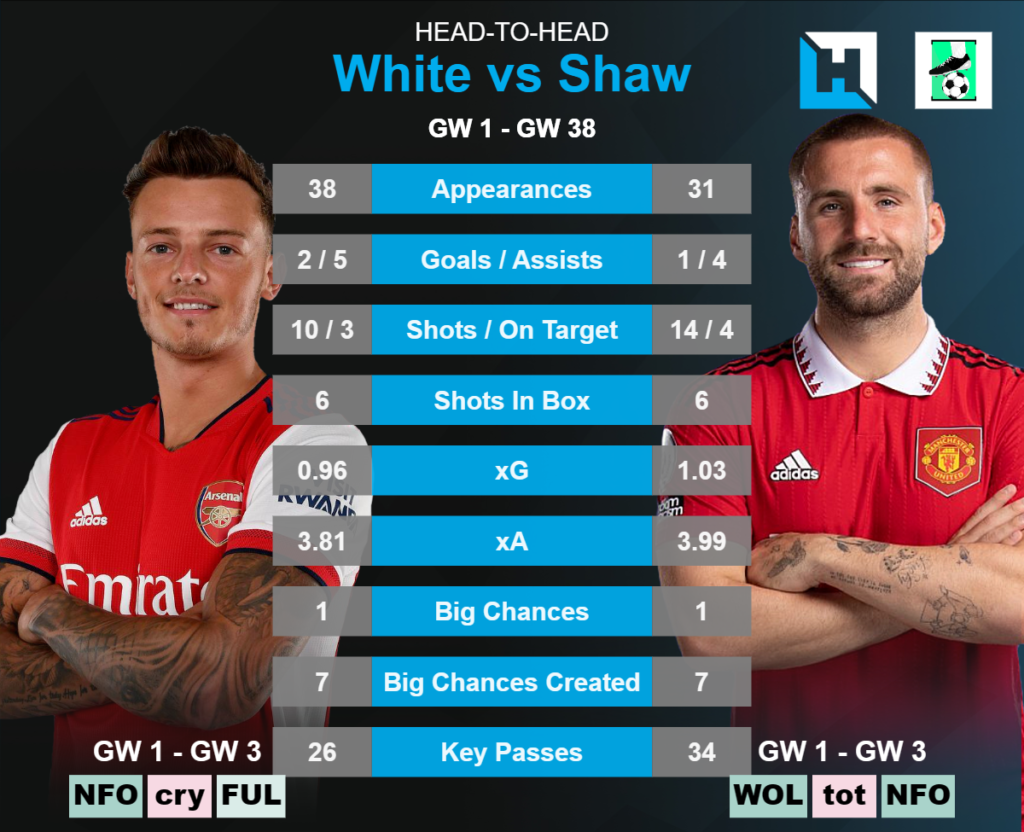 Shaw despite playing 7 games lesser than White has a better xG and xA.