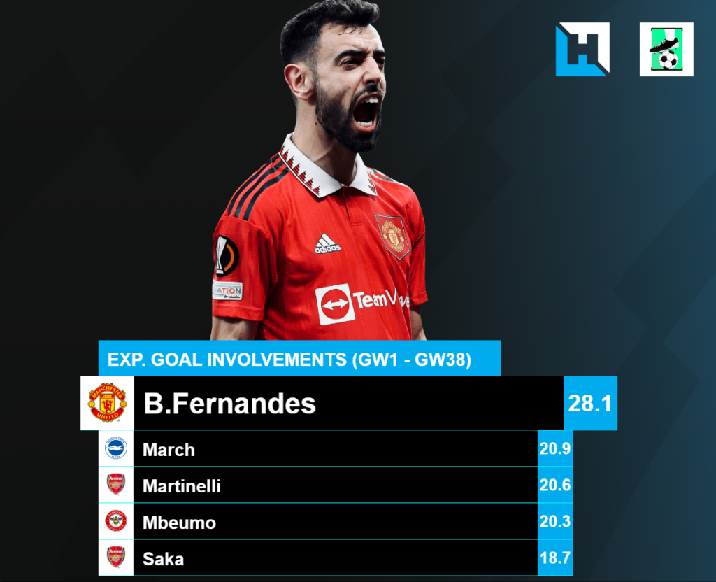Odegaard is only 6th behind Bruno, March, Martinelli, Mbeumo and Saka.