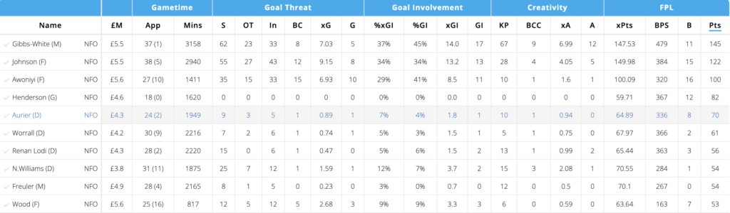 Forest have some assets in Awoniyi, Gibbs White, and Johnson who is now classified as a 6.0 Million midfielder in the game. All three played a crucial role in Forest staying up in the PL and will once again be the main stars from an FPL perspective when it comes to Forest!