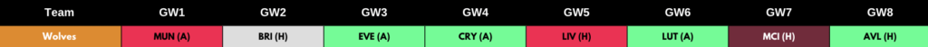 The only downside is Wolves’ set of fixtures. They are due to play Man Utd (A), Brighton (H). Liverpool (H) and Man City (H) in 4/7 of their opening fixtures. There have also been a lot of exits such as Jiménez, captain Rúben Neves, Adama Traoré and Nathan Collins to name a few. Furthermore, Wolves have not added quality players to their squad due to FFP issues which have left the manager frustrated.