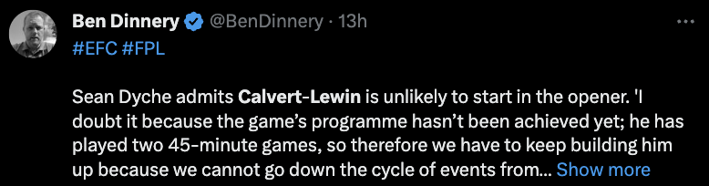 Dyche has added that it’s unlikely that DCL is ready to start GW1 and he is still building up on his fitness. Not an option for GW1, but should come into FPL reckoning once he’s fit and back!