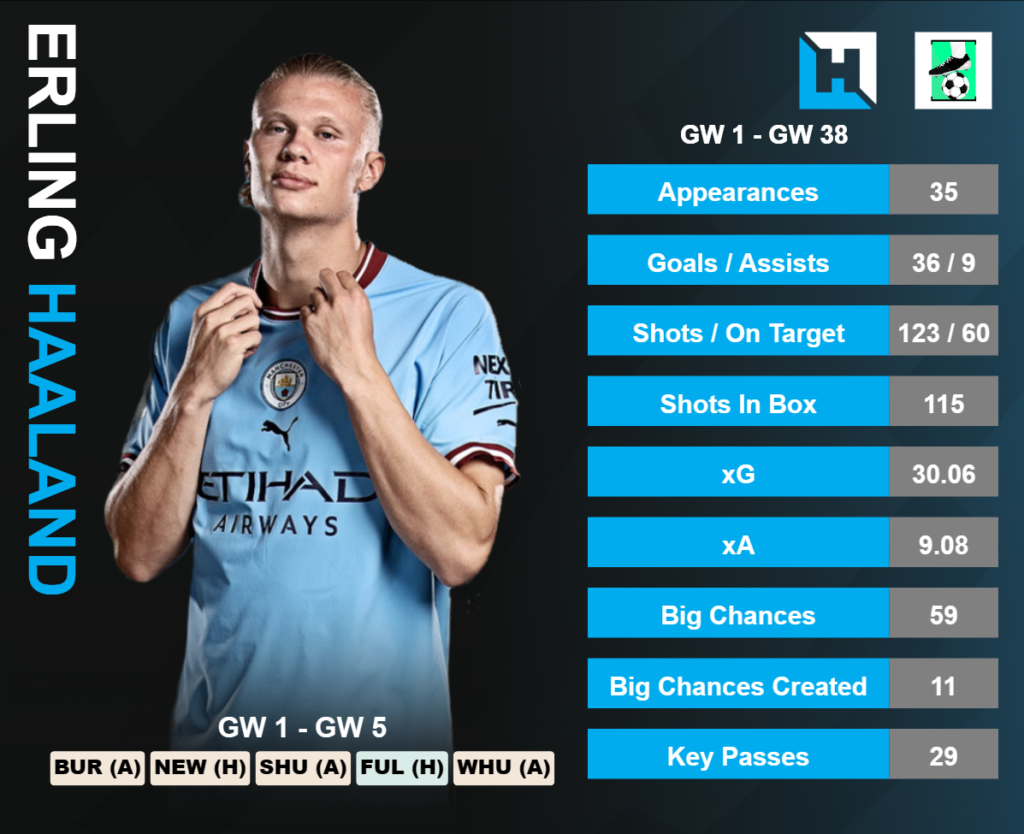 Haaland(c) is a no-brainer in GW1 against a newly promoted Burnley side. It is simply difficult to bet against the 86.5% owned forward for Captaincy and rightly so. 36 goals in Premier League is just insane. Haaland did Top all the Goal scoring metrics last season- Goals, xG, Big Chances, Shots, Shots inside the box, etc.
