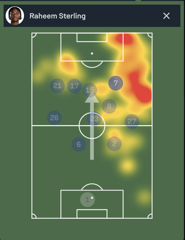 Sterling Heatmap & Positioning vs West Ham