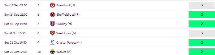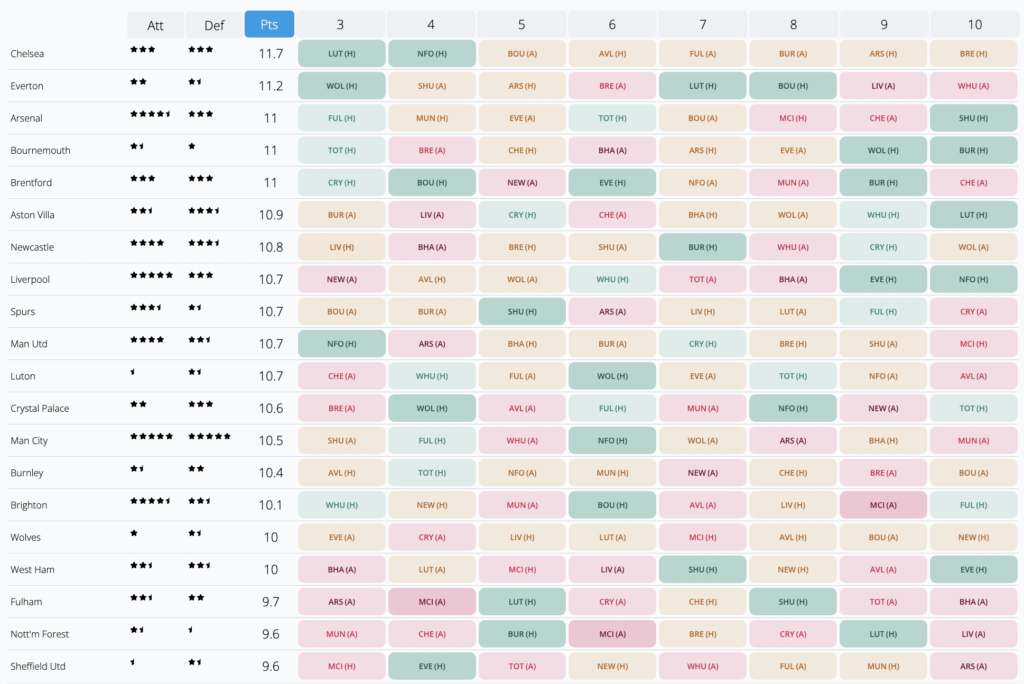 FPL Fixture List from GW3-10