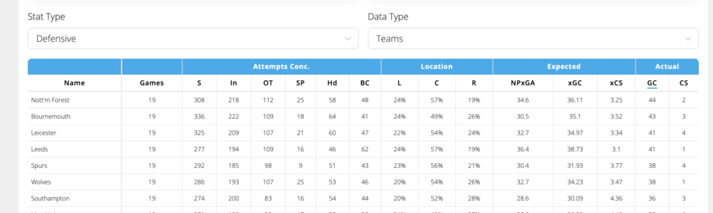 Meanwhile, Brentford’s opponents Fulham were very lucky to win at Everton last time out. The Cottagers had the third worst xGC. They also had the 6th worst xG, inspite of playing an Everton side that didn’t cover themselves in glory last season in defence.