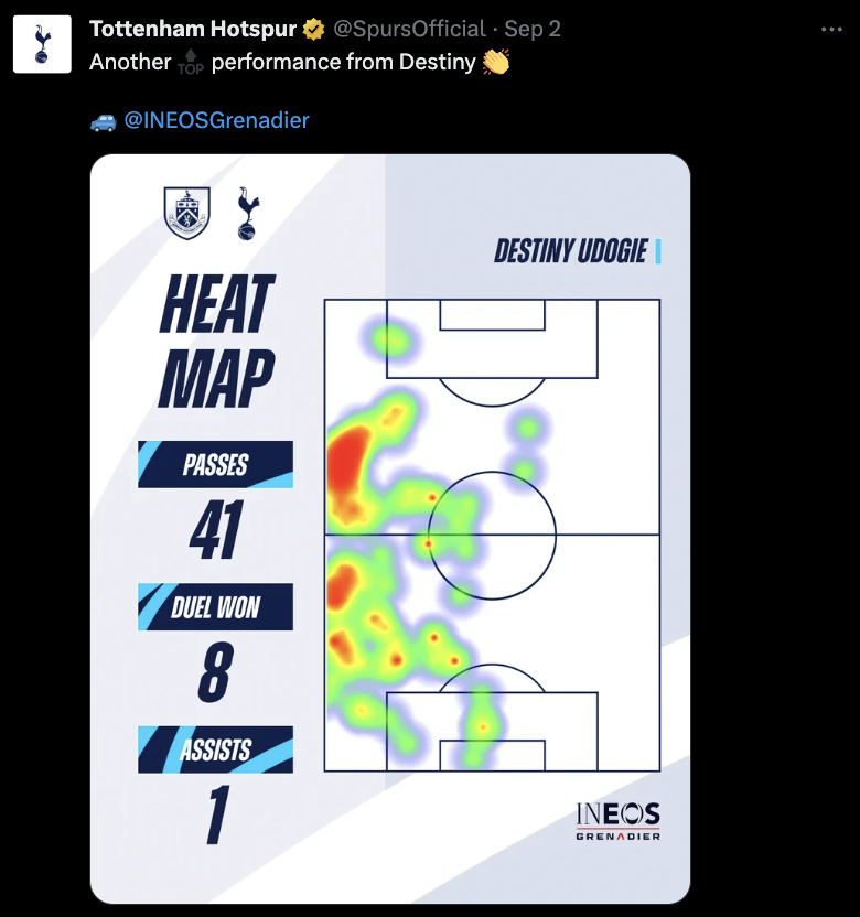 Udogie is up against one of the worst attacks in the league this season, Sheffield United have scored only 4 goals in 4 games from an xG of 2.87(2nd lowest in the League). He is also very attacking having picked up two assists in the last two games. Sheffield have also conceded the 2nd highest xGC(9.47) amongst all teams and Udogie could have both attacking and defensive return from this game.