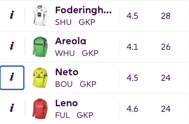- Areola is the other keeper in this draft, he has made 26 saves so far this season which is the 2nd best in the League, at just 4.1 Million he’s a no-brainer option.