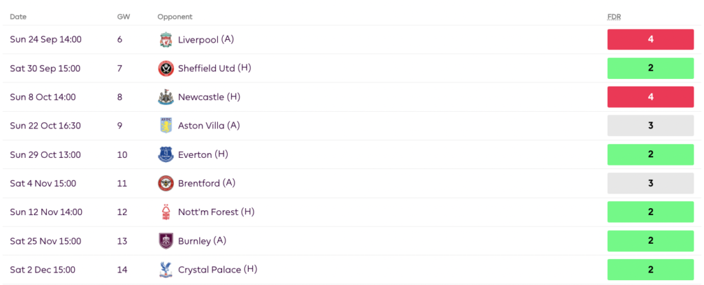 - Flekken has decent fixtures and has good clean-sheet potential in the next few games, Brentford’s defence has the 6th best xGC in the league so far this season(6.05 in 5 games). They have also conceded only six goals in five games.