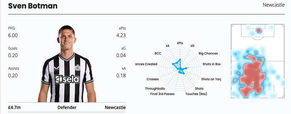 Botman has also shown better attacking threat this season with a 0.12 xGI this season. With great fixtures, good for bonus points, and a price that allows you to add other expensive premiums into your team, Botman is a great transfer this GW.