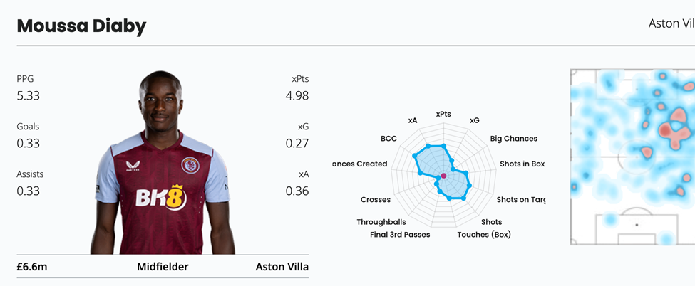 One worry about Diaby is that he is overperforming his underlying stats with 2 attacking returns from an xGI of 0.40. Nonetheless, Diaby has shown his haul potential, especially in favorable fixtures, so managers on a wildcard or those planning ahead should look to bring in the Villa forward, as by GW10, he will be a template pick.