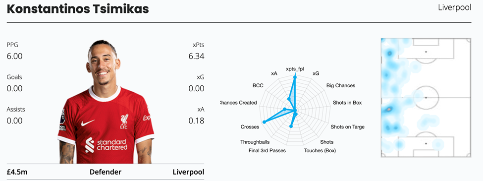 Lastly, Tsimikas does have a decent attacking threat, as shown by his 0.21 xGI per 90 minutes last season. He was on some corners too vs Everton in GW9, and is a great enabler to consider especially if you’re wildcarding this week.